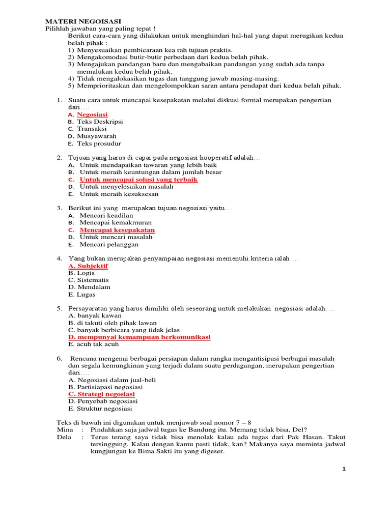 Kami mencoba menyediakannya baik pilihan ganda maupun esay. Untuk mencapai suatu kesepakatan yang memuaskan, negosiasi harus dilandasi dengan. 14% menganggap dokumen ini tidak bermanfaat, tandai dokumen ini sebagai tidak bermanfaat. Apakah artikel ini merupakan contoh teks negosiasi pilihan ganda? Sep 08, 2019 · soal pilihan ganda bahasa indonesia teks negosiasi beserta jawabannya.